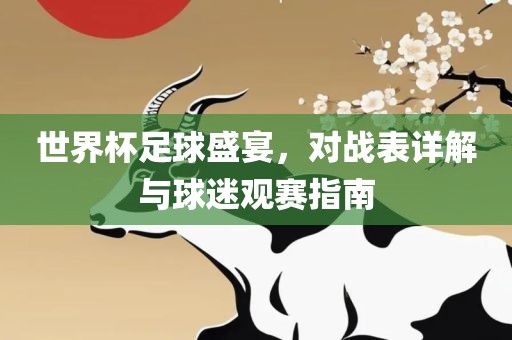 摘要:世界杯足球盛宴即将上演,本文为你提供详细的对战表概览和球迷观赛指南。从小组赛到淘汰赛,各大球队将展开激烈角逐。作为球迷,你可以通过本文了解赛事安排、球队实力对比以及观赛指南,不错过任何一场精彩比赛。让我们一起期待这场足球盛宴的激情与荣耀!