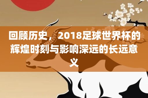 摘要:回顾历史,2018年足球世界杯展现了足球运动的辉煌时刻,全球球迷的狂欢和激情燃烧。这场盛事不仅留下了精彩比赛和巨星表现的深刻印象,还促进了足球产业的发展,激发了青少年对足球的热情,并加强了国际间的文化交流与友谊。其长远意义在于推动了足球的全球普及和进步,为世界足球事业发展注入了新的活力。