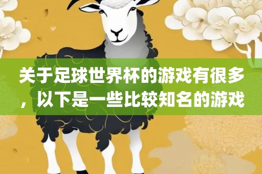 关于足球世界杯的游戏有很多,以下是一些比较知名的游戏