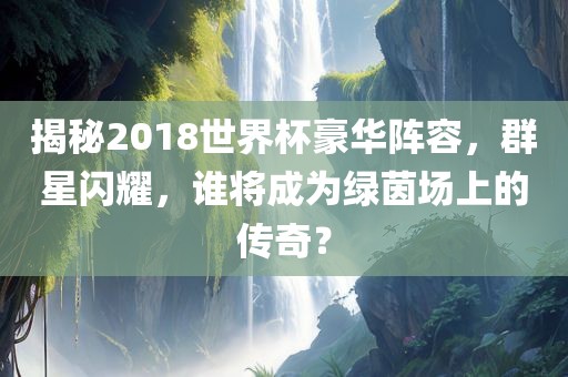 揭秘2018世界杯豪华阵容,众多球星齐聚绿茵场,星光璀璨。谁将成为传奇人物,引领球队走向胜利之路?赛事充满悬念和期待,球迷瞩目。这是一场充满激情与荣耀的较量,球员们的精湛技艺和顽强拼搏精神将在这里得到完美展现。让我们共同期待这场绿茵盛宴,见证未来的传奇诞生。