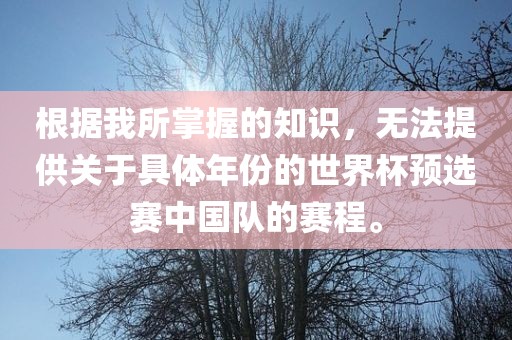 根据我所掌握的知识,无法提供关于具体年份的世界杯预选赛中国队的赛程。
