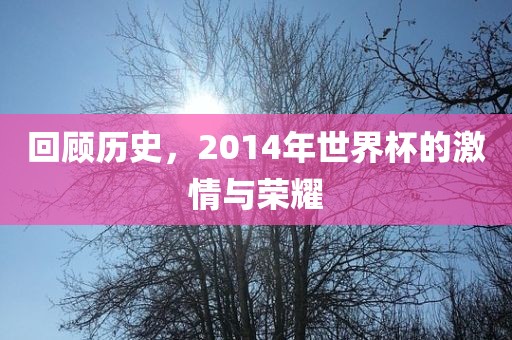摘要:,,回顾历史,2014年世界杯展现了激情与荣耀。全球各地的球迷见证了这场足球盛事的精彩瞬间,球队间的激烈比拼点燃了人们的热情。这一年的世界杯留下了许多难忘的回忆,包括精彩进球、紧张对决和荣耀时刻。这是一届令人难以忘怀的世界杯,永远铭记在足球历史中。