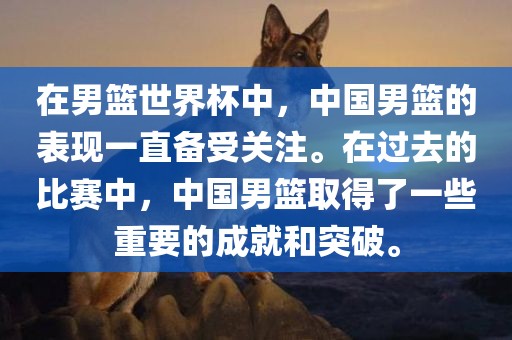 中国男篮在男篮世界杯中的表现备受瞩目。在过去的比赛中,中国男篮取得了一些重大成就和突破,展现出强大的实力和潜力。他们的表现吸引了无数球迷的关注和支持,成为了国内篮球界的骄傲。期待中国男篮在未来的比赛中继续发扬光大,创造更加辉煌的成绩。摘要字数在100-200字之间。