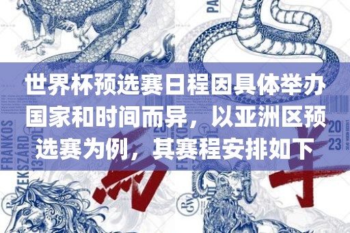 世界杯预选赛日程因具体举办国家和时间而异,以亚洲区预选赛为例,其赛程安排如下