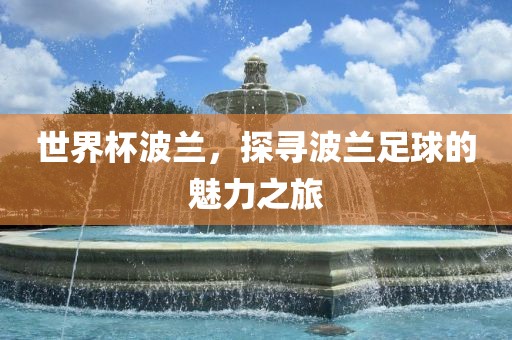 摘要:探寻波兰足球的魅力之旅,世界杯赛场上的波兰队备受关注。波兰足球历史悠久,实力逐渐增强,拥有众多优秀球员和精彩比赛。在世界杯赛场上,波兰队展现出顽强的拼搏精神和团队合作精神,吸引了无数球迷的目光。此次世界杯,波兰足球将继续展现其独特的魅力,为球迷们带来精彩的比赛和难忘的回忆。