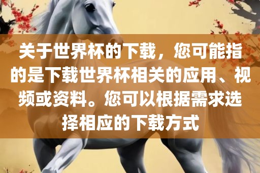 关于世界杯的下载,您可能指的是下载世界杯相关的应用、视频或资料。您可以根据需求选择相应的下载方式
