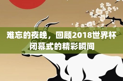 2018世界杯闭幕式是一场难忘的盛宴,它回顾了过去的辉煌,也展望了未来的精彩,让我们珍惜这些难忘的瞬间,期待未来的相聚,共同感受足球的魅力与激情。